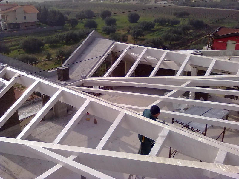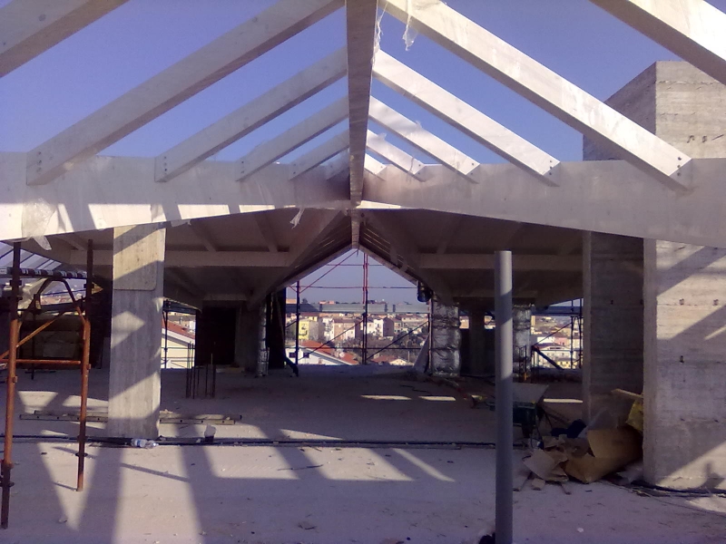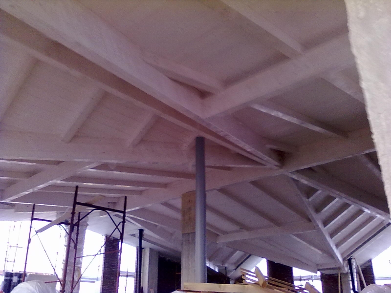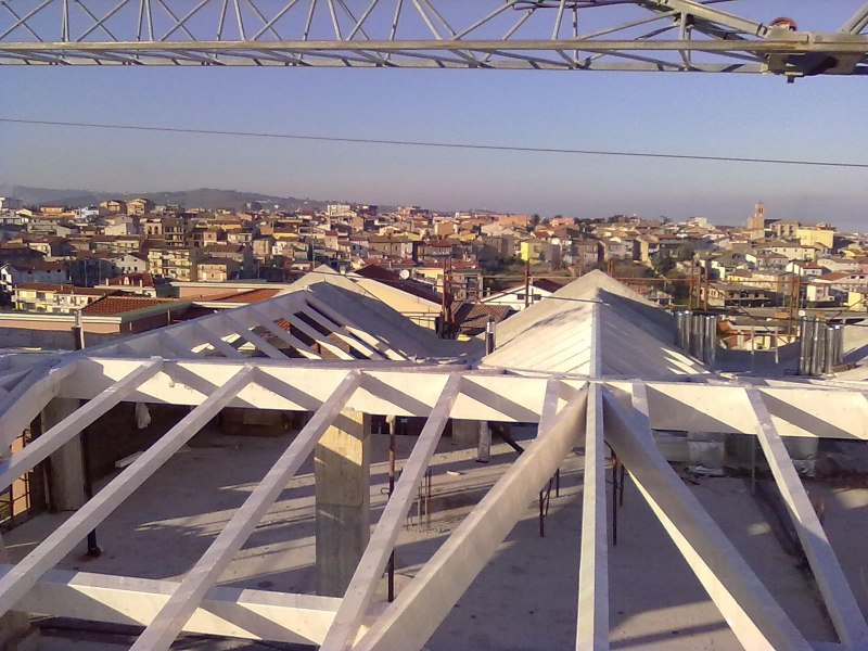 Tetto di copertura in legno lamellare realizzato dalla ditta Puglia Legnami srl;